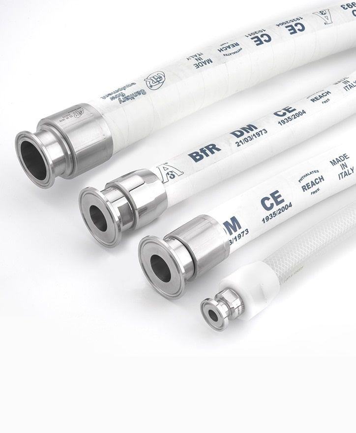 Гибкие шланги из силикона и PTFE, преднозначены для установки на предприятиях фармацевтической, биотехнологической, косметической, пищевой и химической промышленности. Все шлнги сертифицированы в соответствии с правилами FDA и соответствуют стандартным требованиям PHARMACOPEIA USP Class VI, чтобы гарантировать нетоксичность и стерильность продуктов, с которыми они контактируют.Aerre Inox производит зажимные фитинги из AISI 316L для гибких шлангов двух основных типов: гофрированные фитинги для шланга с длиной, предварительно определенной заказчиком, многоразовые фитинги, которые могут быть прикреплены к шлангу непосредственно конечным пользователем.