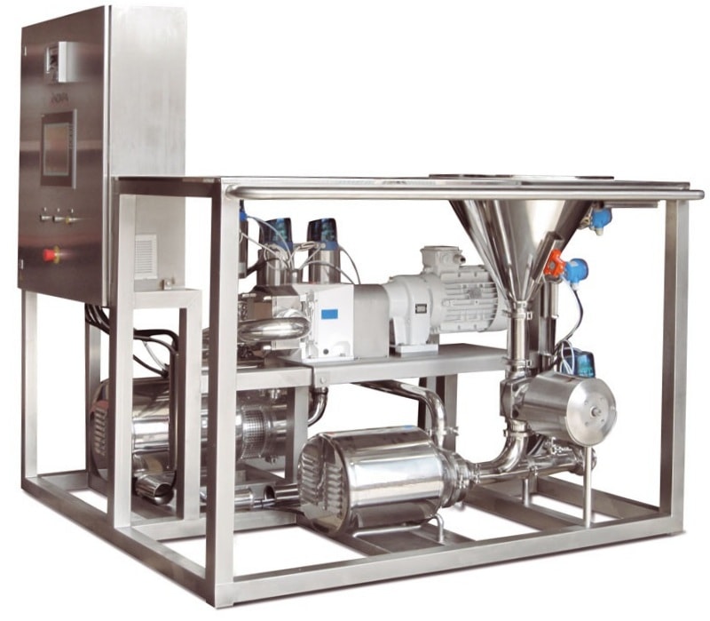 Оборудование представляет собой идеальное решение для растворения твёрдых веществ (в значительных количествах). В фармацевтической промышленности применяется главным образом для приготовления или подготовки предварительных смесей для сиропов (сахар и активная основа растворяются в минерализованной воде).Обычно данный процесс проходит при высокой температуре для улучшения растворимости твёрдых веществ.