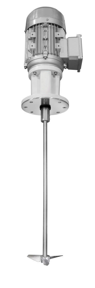Мешалка вертикальная — Представляет собой вертикальную мешалку с приводом, непосредственно от электродвигателя, предназначенную для процессов перемешивания, диспергирования и рециркуляции. Данные мешалки нашли широкое применение в процессах мощного и высокоскоростного перемешивания в пищевой, косметической, фармацевтической и химической промышленностях. Устанавливаются на ёмкостях до 1 500 литров обычно для работы с маловязкими средами.Принцип работы
