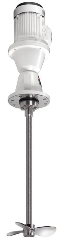 Мешалка вертикальная среднескоростная — Представляет вертикальную мешалку с приводом непосредственно от электродвигателя, предназначенную для процессов перемешивания, диспергирования и рециркуляции. Данные мешалки нашли широкое применение в процессах мощного и высокоскоростного перемешивания продуктов в пищевой, косметической, фармацевтической и химической промышленностях. Для каждого процесса тщательно отбирается наиболее подходящая обработка поверхности. Устанавливаются на ёмкостях до 20.000 литров обычно для работы с мало вязкими средами.Принцип работы