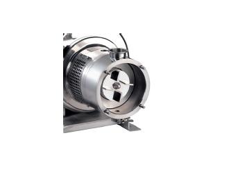Фармацевтический проточный миксер — Позволяет перекачивать, диспергировать, гомогенизировать и эмульсировать широкий ряд продуктов. Особенно выгодным, является применение в уже существующих установках, т. к. нет необходимости в модификации резервуаров, что требуется при монтаже вертикальной или донной модели. Миксеры работают с рециркулирующими ёмкостями и, наилучший результат достигается, пропуская продукт через миксер несколько раз. Благодаря конструкции совместимой с CIP, SIP, миксеры широко используются в фармацевтической промышленности. Примером процессов является изготовление офтальмологических растворов или растворов для контактных линз, производство сиропов, изготовления оболочек для таблеток, приготовления инъекционных препаратов, кремов и лосьонов.Принцип работы