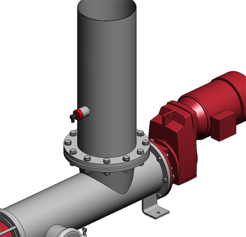 Моноблок. Торсион с устройством для подачи массы. Фланец PN10 DIN2632 на всасывании. Эксцентриковое соединение на подаче, фланец PN10 DIN2632. Корпус с эксцентриковым инспекционным отверстием (лёгкий демонтаж). Двигатель 3 ph 400/690 V, 50Hz, IP-55. Окрашен в красный цвет RAL3003.