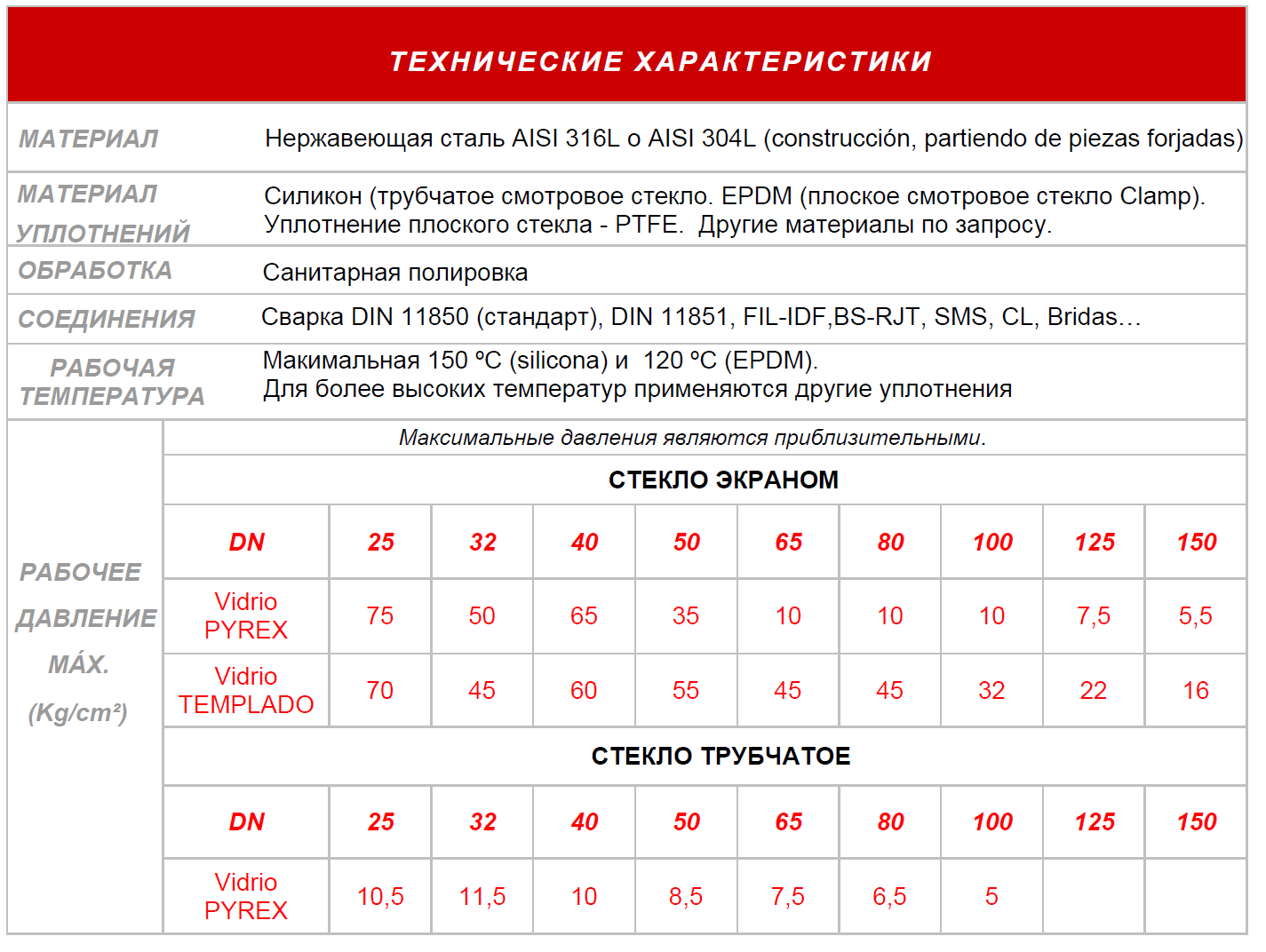 Стекла смотровые — Технические характеристики.Трубчатое смотровое стекло состоит из нержавеющей стали и из стекла пирекс того же сечения, что и труба. Позволяет просматривать четко поток продукта. Применяется в пищевой, косметической, фармацевтической и тонкой химической промышленности.