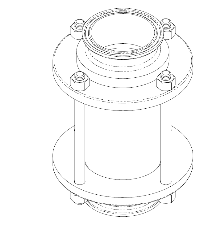 Доступные размеры DN 25/1 "до DN 150/6". Полный внутренний проход. Крепление автономными гайками. Угол обзора 360°. Может быть использован в вертикальном или горизонтальном положении. Сварное соединение (стандарт).