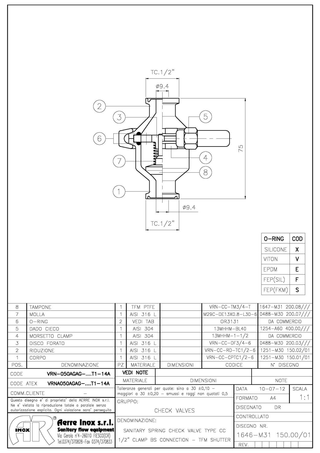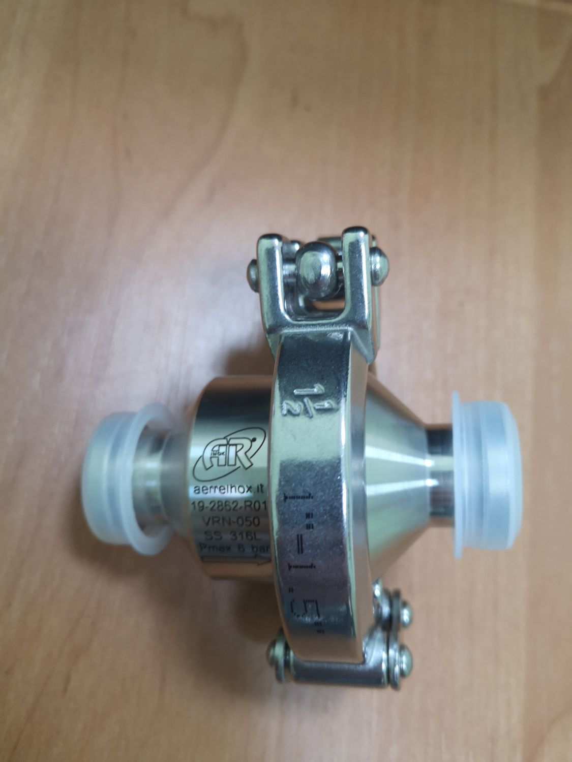 Корпус клапана изготовлен из цельного круглого стержня из нержавеющей стали AISI 316L. Он состоит из двух частей в собранном виде со стандартным зажимным кольцом. Клапан может быть легко и быстро демонтирован и собран без какого-либо инструмента.