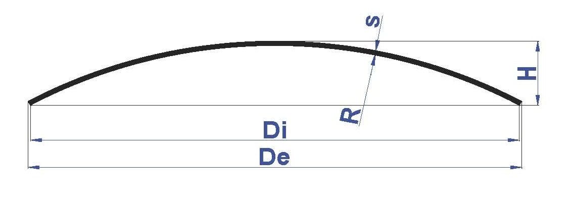 Выпуклое днище (неотбортованное) из нержавеющей стали, максимальная толщина 50 мм, изготовлено методом холодной штамповки