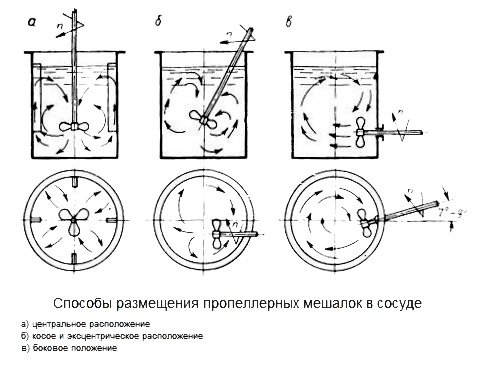 Существует несколько способов установки мешалок в сосуде: