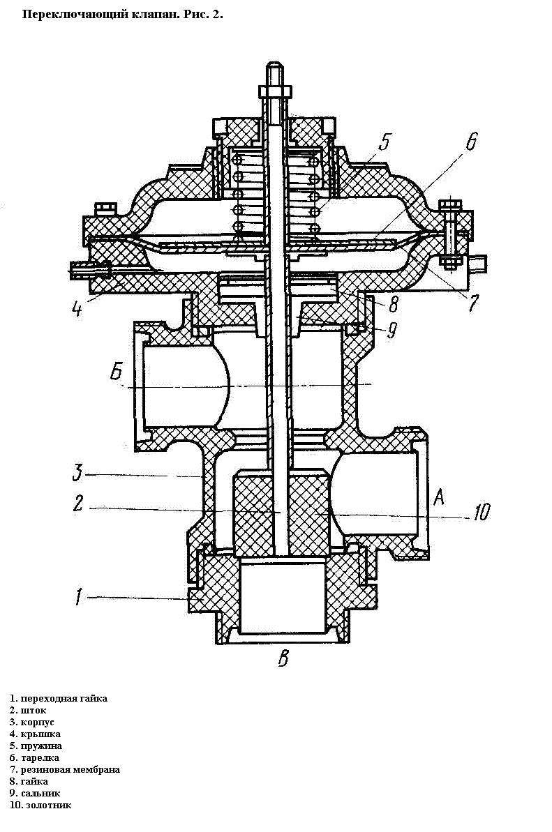 Конструкция переключающего клапана показана на Pис. 2.