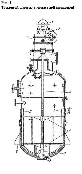 Тепловой аппарат с лопастной мешалкой показан на рис. 1.