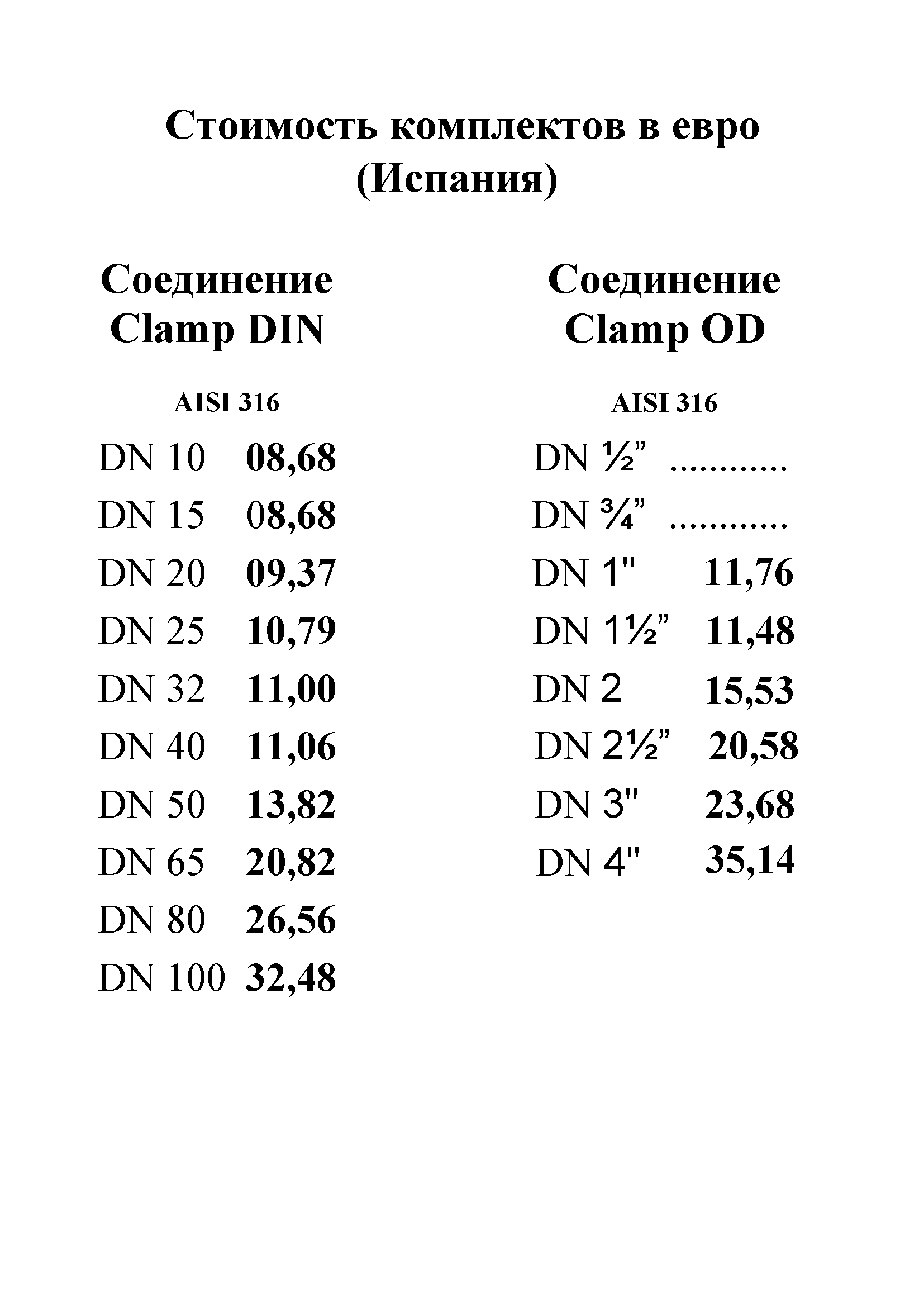 Соединение Clamp — Стоимость комплектов