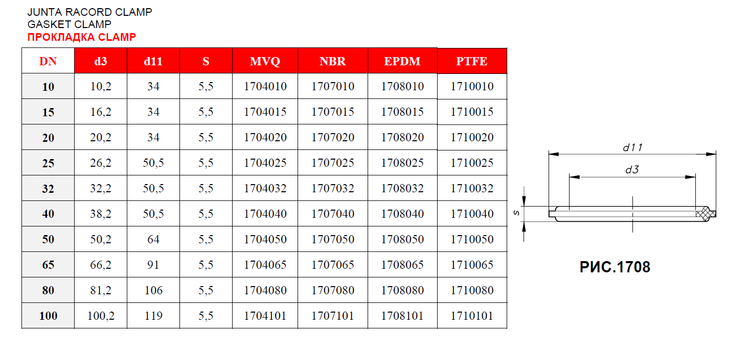 Уплотнения Clamp (Кламп) EPDM: