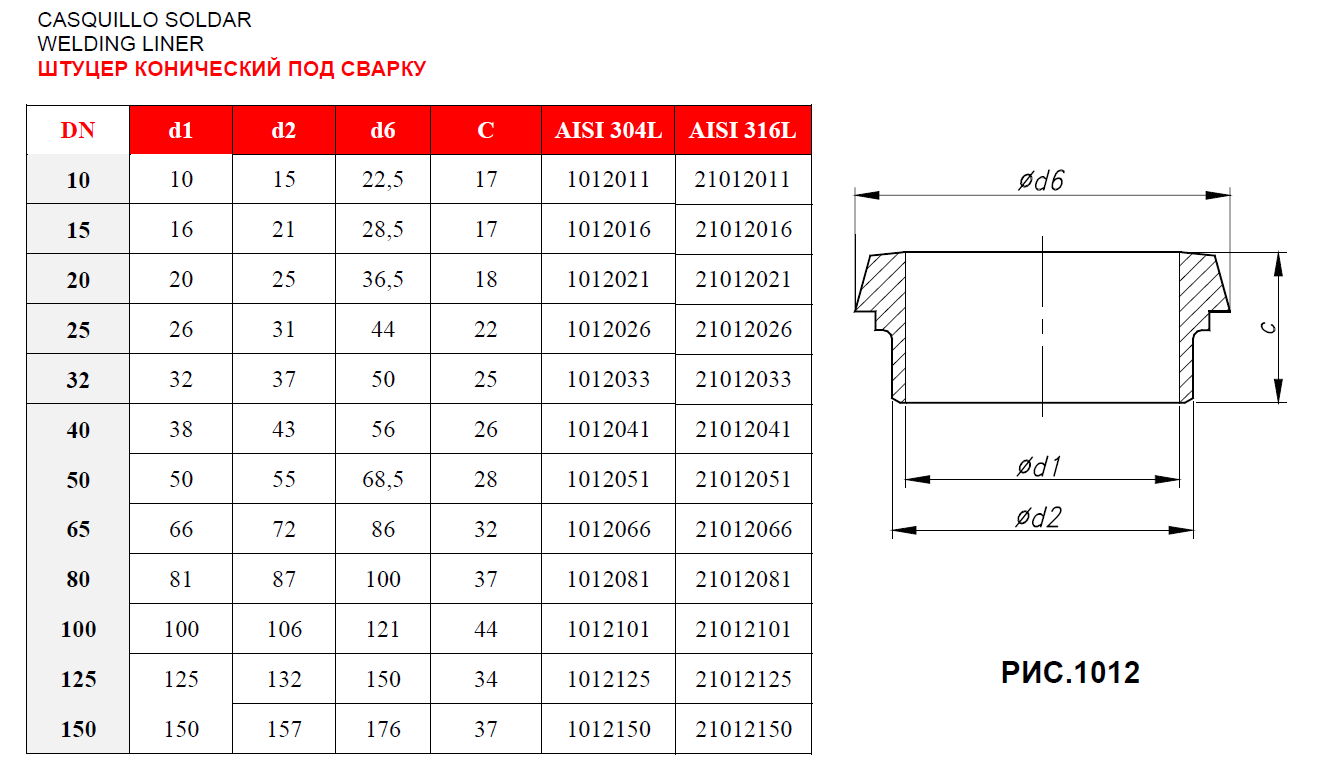 штуцер конический din 15 aisi 304l aisi 316l (the conical fitting weld art. R0023-006015 304l 316l dn 15)
