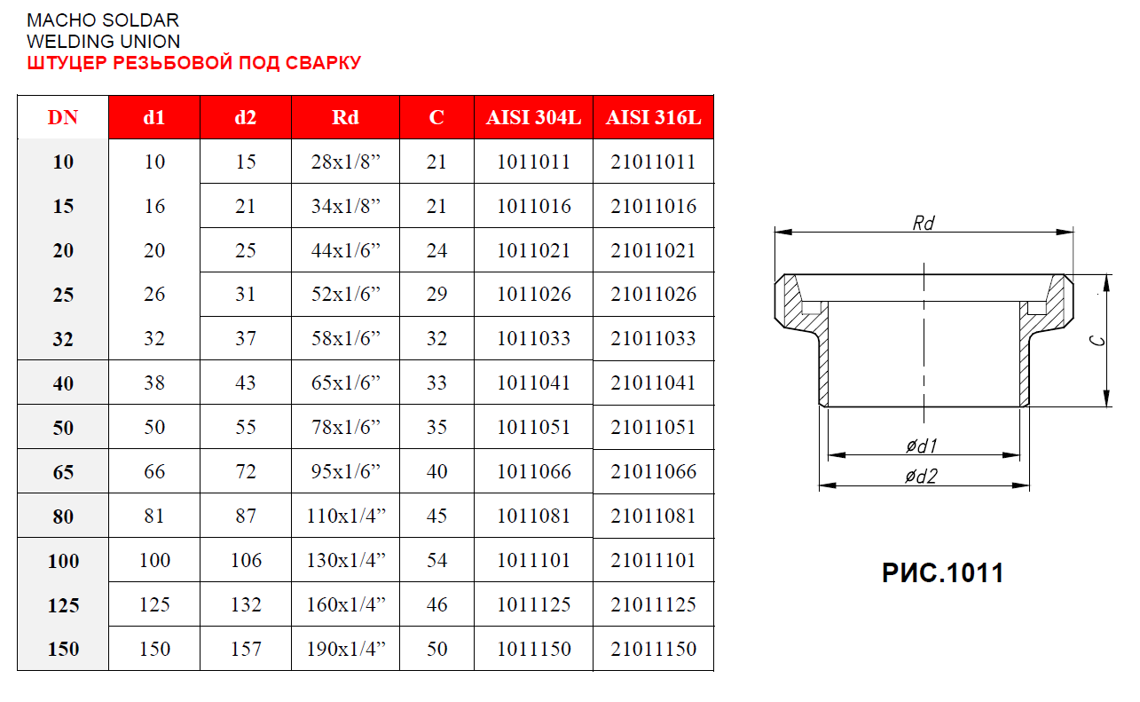 штуцер резьбовой dn 100 aisi 304l aisi 316l (fitting threaded welding R0013-0060100 aisi 304l aisi 316l dn 100)