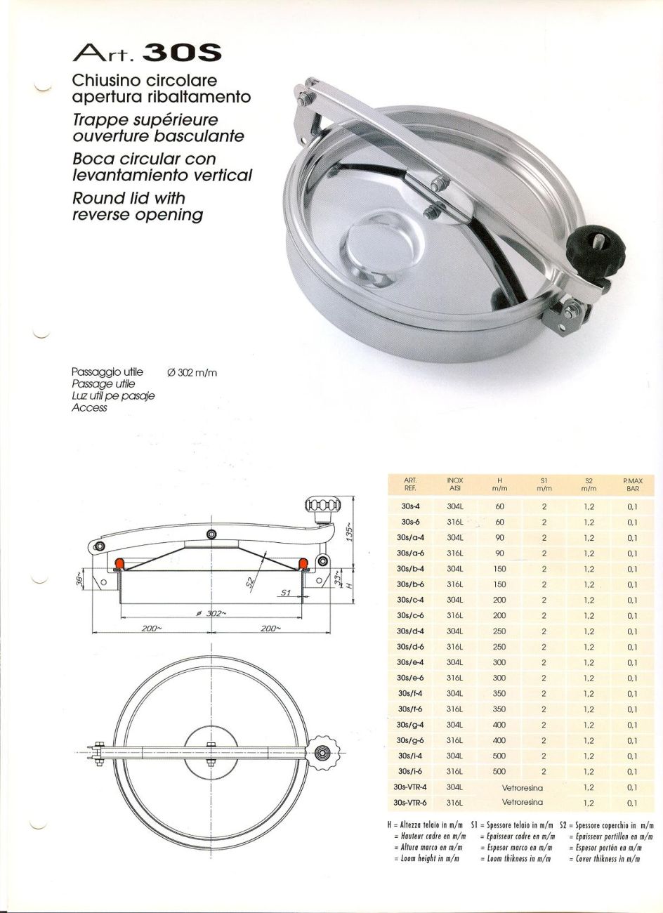 Люк круглый dn 300 90X2 AISI 304L T9232-04090002 30S/A-4 — 87,17 евро DDP склад г. Киев